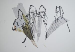 Serie Haltungen 2014 Mischtechniken (Zeitung und Tusche) 32 x 24 cm / pp. 50 x 40 cm