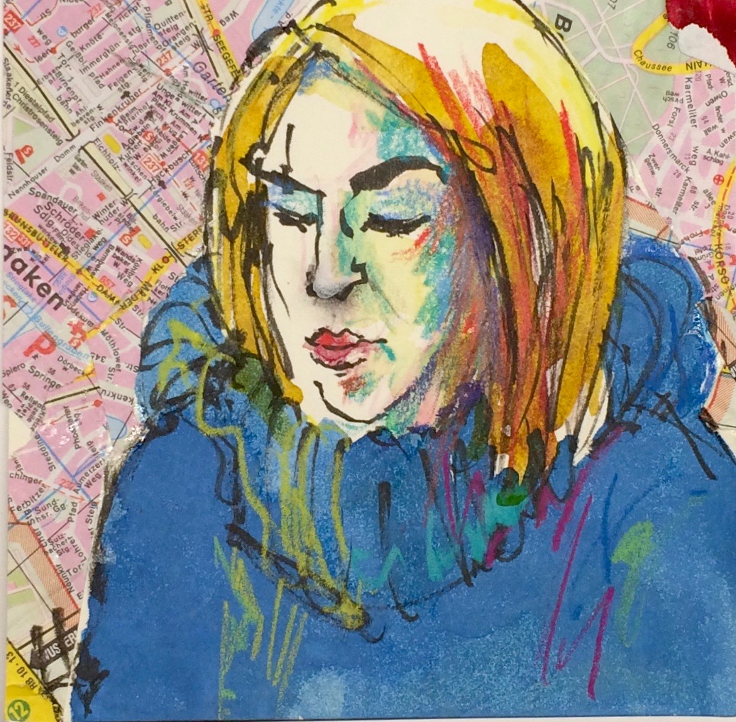 Serie Menschen der Stadt 2017 Mischtechnik 14 x 14 cm /pp. 30 x 30 cm