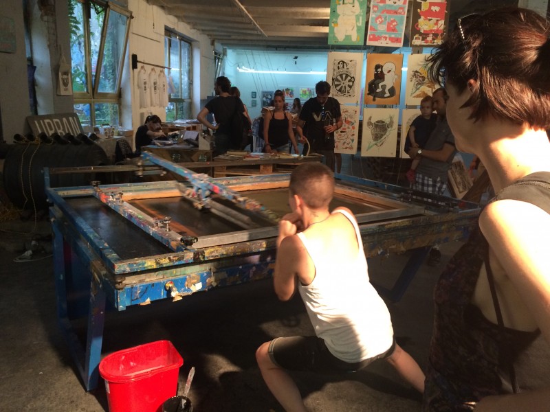 Siebdruckerin im Einsatz