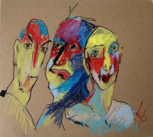 Serie red jackets 2002 Chinatusche und Aquarellkreide auf Karton 23 x 22,5 cm / pp. 50 x 50 cm