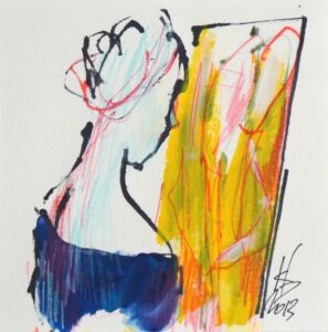 Serie Menschen der Stadt 2013 Tusche und Aquarellkreiden 13 x 13 cm / pp. 30 x 30 cm